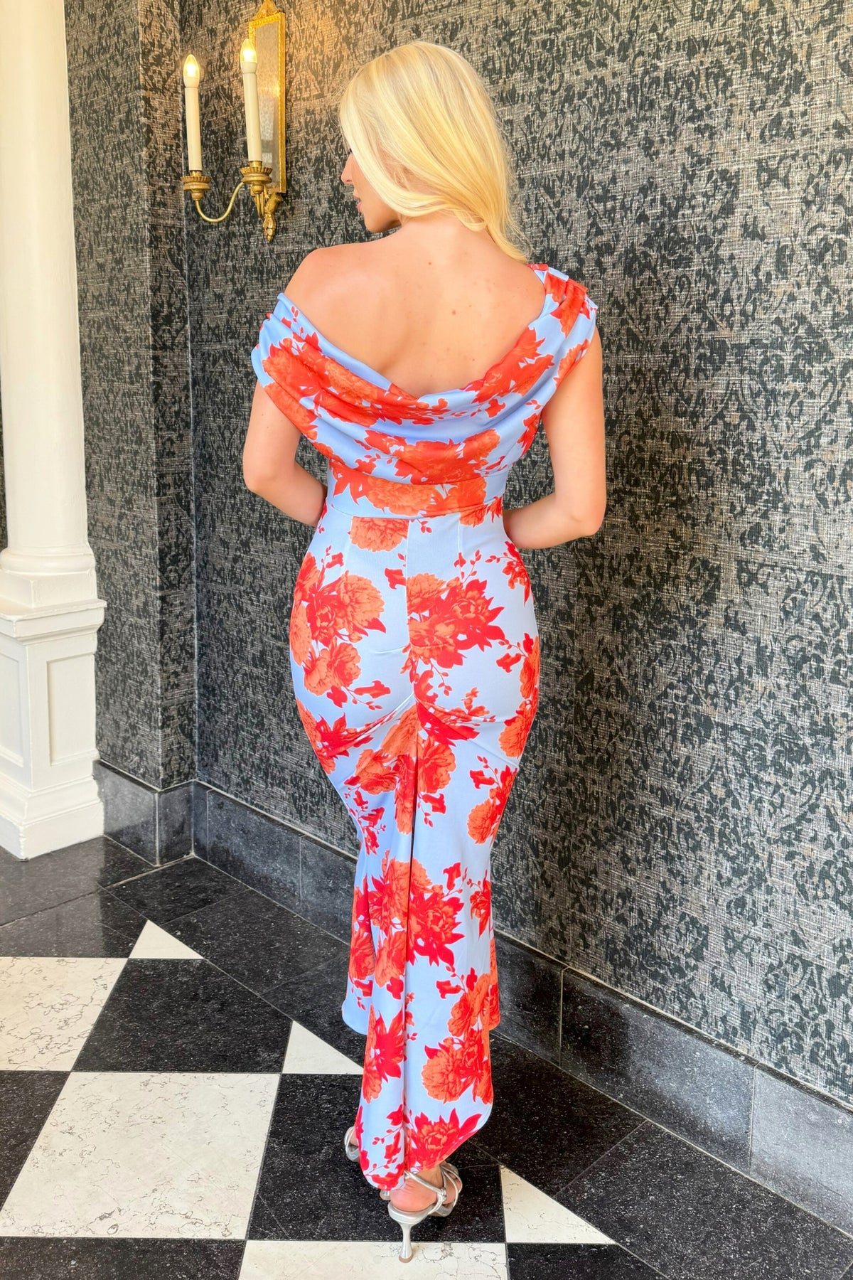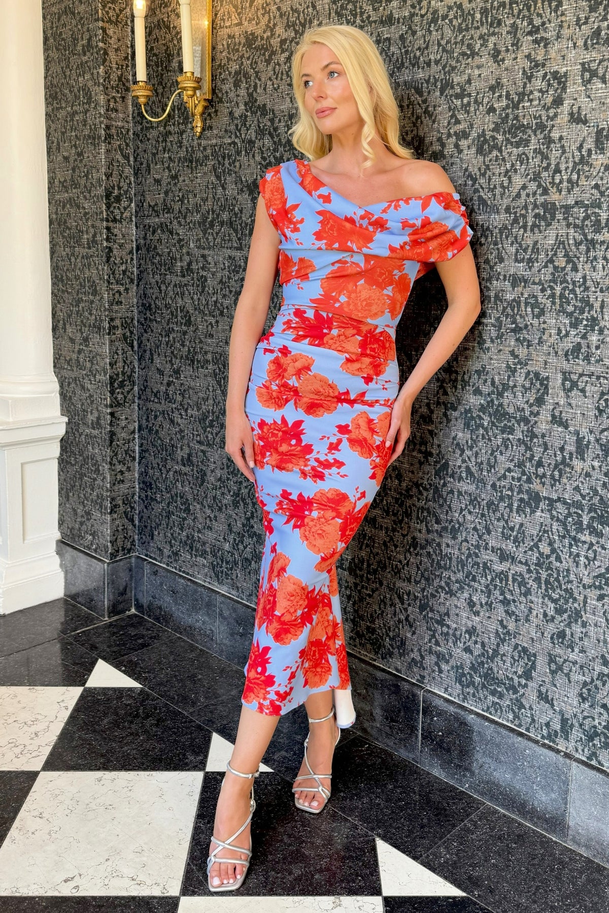 SS26 Mercury midi dress in powder blue & orange floral D3